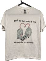 hand drawn on gildan unisex white t-shirt. unisex size medium.